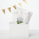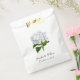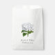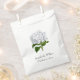 Saco elegante de favor branco com trabalho de arte adorável de uma hidrangea branca. Personalize o texto personalizado preto para o evento de casamento. Excelente para doces e bares de doces.
