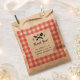O toque perfeito para uma festa de noivado I Do Do CHURRASCO ou um favor de janto de ensaio, este saco de favores tem o monograma do casal entre ferramentas de grelhamento e uma mensagem personalizada, tudo com um padrão alegre de cobertor de piquenique vermelho.
