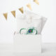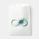 The symbol of infinity with a bright, green, artistic peacock feather on a white background. Tattoo style.