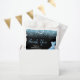 A beautiful light blue themed elegant watercolor dress gown on a black background with faux glitter at the top and bottom of the favor bag.