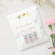 Esta charmosa bolsa de favorecimento de chá de fraldas de aquarela apresenta pilhas de macarões maleáveis, azuis e cor-de-rosa, amarrados com um arco doce, e fontes elegantes, este design define o tom de uma festa de inspiração na moda francesa. O texto "Um doce obrigado" acrescenta um toque francês caprichoso, fazer perfeito para dar boas vindas a um pequeno com talento. Ideal para um tema de chá de fraldas que é romântico e chique.