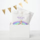 Adorable kid's birthday thank you favor bags featuring a cute watercolor unicorn with pastel rainbow and surrounded by colorful stars. ideal party supplies for your little girls' birthday celebration!
