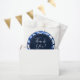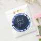 Este belo e atraente design apresenta um círculo azul de índigo marinho escuro com as palavras, "Obrigado!" em branco na tipografia do roteiro de caligrafia. Abaixo do obrigado você está os nomes personalizáveis das recém-casadas em texto sans serif curvo. O bordo exterior do círculo apresenta um padrão de coloração d'água do chibori, azul e branco, semelhante ao agate e ao mármore. Você pode personalizar este item alterando o monograma no modelo do produto.