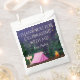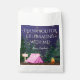 Sacas de lembrancinhas para festa de aniversário de menina com uma linda tenda rosa e fogueira em um fundo de floresta noturna estrelada. Estas sacolas de tratamento para festa de aniversário de acampamento de meninas são facilmente personalizadas para o seu evento, basta adicionar seus detalhes no estilo de fonte e palavras de sua escolha.
