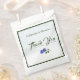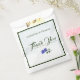 Design apresenta um adorável fundo azul-neblina aos nomes da noiva e do noivo logo acima das palavras, "Obrigado". Duas belas rosas são apresentadas juntas por baixo da redação. Projetado para coordenar com a suíte de casamento Misty-Blue e Green.