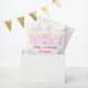 Esta bolsa de promoção de papel de festa de aniversário genérico apresenta bordas coloridas de confetti de cima e de baixo com um texto de modelo de aniversário cor laranja. Este texto design pode ser personalizado para qualquer ocasião especial. Personalize o texto nos campos modelo ou edite usando a ferramenta design para selecionar um estilo de fonte, tamanho e cor que você preferir.