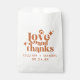 Este Moderno Retro Laranja Favor Bag é uma forma excelente de adicionar um pouco mais de personalização ao seu grande dia. A paleta colorida de laranja queimado dá a isto um aspecto retrô extra moderno, mas antigo. Diga obrigado com amor e Obrigados.
