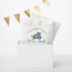 Cartão de convite para chá de fraldas em forma de grão com ilustração aquosa de mirtilos. O texto diz "um bebê doce de fruta está a caminho." Itens correspondentes disponíveis.
