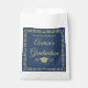 As bolsas simples, mas na moda, apresentam uma vinha de folha de ouro à volta da borda e um texto de ouro moderno sobre um fundo azul marinho com boné de formatura de ouro e o ano de graduação. Uma elegante procura por um segundo grau ou formando universitário.