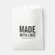 Na moda com a palavra "Made with Love" em letra negrito e um script na moda para o seu nome ou nome de loja em preto. É excelente para seus bens feitos à mão ou feitos em casa e presentes de favores. É fácil personalizar; você pode substituir o texto do marcador de posição para adicionar suas próprias informações. Para obter mais opções, como alterar a fonte e seu tamanho, clique no botão "Personalizar". *Observe que a Marca d'água Zazzle que aparece na visualização de zoom NÃO aparecerá no produto impresso final © Rosewood e Citrus