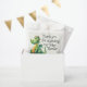 Esta bolsa de favor de papel apresenta um design charmoso e equilibrado que traz um toque caprichoso ao seu chá de fraldas. Impresso na frente, o adorável dragão de desenho animado preenche a parte superior esquerda da bolsa, sua forma redonda e expressão alegre dando a ela uma sensação de livro de histórias. As pequenas asas do dragão, a cauda enrolada e o doce comportamento fazem dele um símbolo perfeito para um cheio de celebração de magia e antecipação. À direita do dragão, as palavras "Obrigado por participar do nosso Chá de fraldas" curvam suavemente ao longo do contorno da ilustração, criando um layout dinâmico que desenhar o olho naturalmente através do design. O texto é renderizado em uma fonte moderna amigável que é fácil de ler enquanto ainda se sente pessoal e quente. Abaixo da ilustração e do texto principal, uma linha personalizável diz: "Com amor, [Nomes dos Pais]" acrescentando um detalhe sincero e pessoal que faz com que cada saco se sinta como um símbolo especial de apreciação.