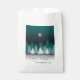 Ilustração da Paisagem Noturna de Natal com a estrela de Belém no céu noturno com silhuetas de abetos.