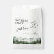 An elegant Wedding design with watercolor mountains and pine trees that you can customize with your details.