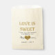 Um saco de favores personalizado lendo "O amor é doce. Obrigado por compartilhar nosso dia especial." Personalizado com os nomes da noiva e do noivo escritos sobre um coração, e a data do casamento. Perfeito para favores, bufetes doces e muito mais! Encontre mais designs de mala, incluindo este design em outras cores! Basta clicar no link para o meu compro abaixo onde ele diz Trabalho de arte Designed pela Sara Winters Design e, em seguida, clicar em "Favor Bolsas" em Browse Store.