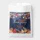 Esta mala de favores de Ação de Graças personalizável é a maneira perfeita de mostrar sua gratidão e apreço aos seus entes queridos. A bolsa apresenta uma bela design com folhas de outono em tons vibrantes de laranja, vermelho e amarelo espalhados pelas bordas. Uma corda de luzes brancas e laranja adiciona um toque quente e festivo ao topo e ao fundo do saco. O centro da bolsa é adornado com "Ação de Graças Feliz" escrito em uma fonte elegante amarela e cursiva, com espaço abaixo para você adicionar seu nome de família ou uma mensagem pessoal. Esta bolsa de favores traz alegria e prazer a todos que a recebem.