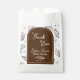 Essas Sacolas de Favor com Desenhos de Conchas Marrons "Obrigado" destacam um fundo marrom quente repleto de conchas marinhas caprichosas, estrelas-do-mar, corações e rabiscos cintilantes para um visual rústico à beira-mar. Centralizado na frente, há um arco marrom delineado com um fino arco interno branco que enquadra seus detalhes personalizados. Dentro do arco, "Obrigado" aparece no topo, seguido por espaço para adicionar o nome da noiva, "Chá de Noiva", uma ilustração de concha marinha e a data. Essas sacolas são perfeitas para embalar lembrancinhas, guloseimas, pequenos presentes ou presentes de agradecimento do chá de noiva. Todas as cores e textos são totalmente personalizáveis para combinar com sua celebração à beira-mar.
