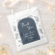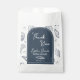 Essas Sacolas de Favor com Doodles de Conchas Marinhas em Azul Naval "Obrigado" apresentam um rico fundo azul naval adornado com doodles caprichosos de conchas marinhas, estrelas-do-mar, corações e brilhos para um toque costeiro ousado. No centro, um arco azul naval delineado com um fino arco interno branco exibe seu texto editável. Dentro do arco, "Obrigado" é escrito no topo, com espaço personalizável abaixo para o nome da noiva, "Chá de Noiva", um pequeno doodle de concha marinha e a data. Perfeito para guloseimas, presentes, brindes de festa e chá de noiva com tema náutico. Todas as palavras e cores são totalmente editáveis para combinar com seu evento inspirado no oceano.
