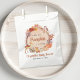 Chá de fraldas russo de outono favorece bolsas que apresentam uma aquarela ilustrativa de uma coroa composta por um tronco de árvore adornado com animais de floresta fofinhos (coruja, veado, esquilo e raposa), flores de queda e abóboras laranja. Um "Docinho Pumpkin Está a Caminho" é escrito numa mistura de simples tipografia e uma escrita de terracota. Especifique o sexo do bebê, se desejado (por exemplo, "está a caminho").