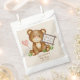 Obrigado seus amigos e família por virem ao seu chá de fraldas com esses obrigados de chá de fraldas do tema 'Nós podemos esperar' que você favoreça o bolsas. Estas bolsas adoráveis apresentam um bonitinho ursinho de pelúcia com uma obrigado para você vir assinar. Esta bolsa de favores pode ser facilmente personalizada com a inclusão do nome e da data da futura mãe. Pode até substituir as palavras "chá de fraldas" e substituí-las pelo seu próprio texto, se preferir. Seus hóspedes vão adorar essas bolsas favoritas e o toque pessoal que oferecem.