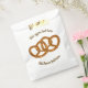 Um design elegante de dois pretzels retorcidos e retorcidos, cozidos em ouro-castanho. Personalize com seu próprio texto para curvar em torno do motivo, tanto acima quanto abaixo dos salgadinhos de padaria.