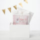 Bonito boneco de neve com neve caindo em torno do "Winter ONEderland primeiro aniversario Party". Design está cor-de-rosa, cinza, azul-céu, preto-e-branco. Simplesmente personalize com o nome do seu filho e a data. Design composto por Designs Holiday Hearts.