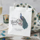 Estas bolsas de favores ao esquadrão azul-pavão-pavão-pavão-chic apresentam um pavão azul desenhado à mão e um pavão-chico tocando ramos de cheio a tinta preta e o título "Esquadrão da Noiva" em um roteiro elegante, tudo contra uma tendência e fundo azul-chico. Personalize com o nome, a cidade e a data da noiva clicando em "Personalizar este modelo" na página do produto.