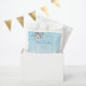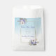 A arte moderna deco dourado, lavanda e rosas bege com folhas. Diamantes prateados no meio com monograma. Fundo azul gradiente