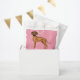 A ilustração original do desenho animado de Destei de um adorável cão Ridgeback da raça Ridgeback, numa cor de fundo rosa, com um padrão de corações em diferentes tamanhos. Há também áreas de texto personalizáveis ideais para um obrigado de evento que você envia, por exemplo.