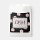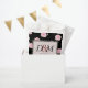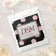 Grandes rosas de repolho cor-de-rosa são espalhados sobre um fundo preto neste design moderno, romântico. O centro está rodeado por um lugar preto em forma de coração. Todo texto é facilmente personalizado.