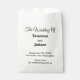 Sacolas de lembrancinhas de casamento com texto preto em fundo branco para casais que procuram uma combinação de cores clássica e atemporal que possa complementar vários temas de casamento. Estas também são adequadas para casais que preferem um design baseado em texto sem elementos de fundo para legibilidade. O texto preto contrastando com o fundo branco também melhora a legibilidade. O texto é alinhado ao centro e as fontes utilizadas são caligrafia, script e sem serifa. As fontes caligrafia e script são usadas para melhorar o design, enquanto a fonte sem serifa é usada para melhorar a legibilidade. Personalize digitando os nomes da noiva e do noivo, data e local do casamento. Você também pode alterar a redação na ferramenta de design, incluindo o estilo e cor da fonte. Por favor, verifique a aparência após digitar o texto. Se a aparência for agradável para você, você pode fazer o seu pedido agora. Se precisar redimensionar ou reposicionar o texto, ajuste na ferramenta de design. Para a noiva e o noivo, parabéns pelo noivado! Desejando a ambos uma vida inteira repleta de amor e felicidade.