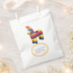 Bolsa de favores de papel branco divertido com gráficos de uma pinata burra colorida. Uma área de texto oval borda em escala amarela tem texto colorido pronto para personalizar para o seu evento de estilo fiesta.