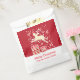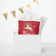 A rena divertida na neve adiciona o seu próprio texto ou nome obrigado da festa de Natal que você dá em tons de vermelho e branco. Perfeito para seus favores de comida de Natal. Design com uma rena a saltar sobre presentes em cores festivas. Personalize com sua saudação e nome de família, lê Feliz Natal da família Dickens.