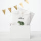 Esta bolsa de favor apresenta um sapo verde acima de Obrigado. Todo o texto pode ser personalizado para ajustado do evento.