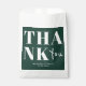Procurando uma sacola elegante de casamento moderno? Olhe para nossa Chic Simples Emerald Green Bold Obrigado pelo Favor de Casamento Bag. Apresentando uma caligrafia ousada que adiciona um toque de sofisticação, esta bolsa de favores esmeralda verde oferece um aspecto simples e limpo. Esta mala minimalista de favorecimento de casamento tem uma reviravolta moderna que se liga para cativar aqueles que têm um olho para a sofisticação sutil.