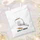 Saco de Dia de as Bruxas engraçado, com gráficos da mão de um esqueleto segurando um pedaço de doce embrulhado de Halloween. Nab Um Tratado em texto preto legal pode ser personalizado para ler o que você quer.