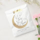 Design apresenta uma lua de ouro falsa com "Estamos sobre a lua" em um texto de caligrafia fofo. Personalize com suas informações ou clique em "Clique para personalizar mais" para editar estilos de fonte, tamanho e cores.