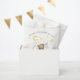 Nossas Bolsas de Favor do Urso de Teddy "Sobre a Lua", são o presente perfeito para seus convidados chás de fraldas que deixa uma impressão duradoura de calor e alegria. Adoravelmente trabalhado para celebrar a chegada da sua pequena, cada bolsa de favores é adorada com ilustrações caprichosas de um urso de pelúcia fofinho aninhado entre estrelas e uma lua brilhante, evocando uma sensação de maravilha e antecipação. A delicada paleta de cores e o charmoso design fazem destas bolsas uma adição encantadora à decoração do seu chá de fraldas, misturando-se sem esforço com o seu tema e destacando-se nos corações dos seus convidados. Esta design foi criada para um chá de fraldas neutro em termos de gênero. Estas bolsas são perfeitas para bens cozidos e pequenos doces!