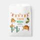 Adicione um toque divertido e festivo à sua celebração mexicana com o nosso vibrante saco de favores "Taco 'Bout a Fiesta", perfeito para chás de fraldas, chás de panela, aniversários e festas de solteira, este slogan apresenta um design lúdico com tacos coloridos, sombreros e maracas, todos colocados contra um pano de fundo vivo dos padrões mexicanos tradicionais.