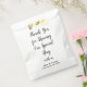 Express your heartfelt gratitude with our elegant wedding favor bags, perfect for saying "Thank You for Sharing Our Special Day". These customizable paper bags are ideal for holding small treats, cookies, tea bags, or mini coffee mugs — a thoughtful keepsake your guests will cherish. Choose from premium paper options and personalize with your names, wedding date, or a romantic design to match your theme. Whether you're hosting a rustic barn wedding, a beachside ceremony, or a modern city celebration, these favor bags add a polished, personal touch that elevates your décor and shows your appreciation. Durable, stylish, and ready to ship, they’re the perfect way to say thanks in a meaningful way.