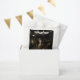 Trick or Treat text can be customized by you. Thin female carrying a lamp and a bone through woods at night, with a dog as a companion.