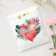 Palma tropical selvagem com ilustração da cor da água do coração em verde escuro e vermelho. Obrigado, bolsas de casamento são perfeitas para um casamento de praia ou destino. Personalize o casamento a favor das bolsas com um obrigado curto que você envia, seus nomes e a data. Estas bolsas de casamento podem ser usadas para uma recepção de casamento, chá de panela ou qualquer evento ou festa.