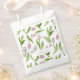 O design do produto apresenta um padrão de flores de tulipa rosa. Esta ilustração botânica com texto personalizado torna sacos de lembrança modernos e exclusivos para chá de noiva, casamento, aniversário, Páscoa, Dia das Mães e mais - OBRIGADO.