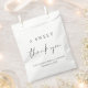 Um saco de chic para seus favoritos para festas chás de panela com "Um doce obrigado" em uma escrita moderna e uma tipografia elegante, seu nome e data de chá.