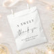 Um saco de chic para seus favores de festa de casamento com "Um doce obrigado" em um roteiro moderno e tipografia elegante, seus nomes e data de casamento.