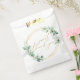 Um Doce Obrigado A Dourada Casamento Eucalyptus Greenery Favor Bag. Apresentando folhas de cor aquosa eucalipto, uma estrutura redonda de ouro e uma folha de ouro com script manuscrito Um texto doce Obrigado.