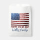Personalize com seu nome de família. Favorece as bolsas com a bandeira dos EUA em cintiladores vermelhos e azuis. Usamos a fotografia de faíscas e não as falhas reais.