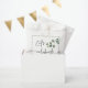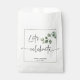 Design moderno e minimalista com eucalipto aquoso com texto, nomes e data. A letra do script "Vamos Celebrar" com glifo e a ramificação do eucalupto atravessando a estreita Linha de Quadro torna o design mais tridimensional e interessante. A paleta de uma cor o torna minimalista e limpo, fácil de misturar e compatível com seu evento. Preencha esta bolsa de favor depois de escolher. Um gesto doce e agradável para os seus convidados. Um presente do coração.