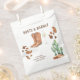 Este design apresenta cores neutras modernas em uma aplicação de aquarela. Design em estampa de vaca, taça de champanhe, cacto do deserto, botas de cowboy.
