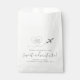Os "Obrigados para compartilhar esta doce aventura" personalizados chá de panela tema viagem ou papel de casamento de destino a favor bolsas apresentam um simples e fofo monograma romântico do coração design de casamento inicial e a tipografia inspirada retroativamente em cinzas editáveis e brancas que podem ser mudadas para corresponder ao seu evento ou mantidas em uma estética mínima subestimada mostrada.