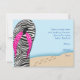 Este divertido convite de festas de verão moderno tem um fundo azul de céu com uma praia de aspecto quente abaixo. As pegadas podem ser vistas saindo da areia. À esquerda há um sacudir flutuante com bolinhas brancas e rosa brilhantes contra uma parte inferior de impressão zebra. Seu texto personalizável vai para o lado direito. Seria um convite para excelentes para qualquer evento de verão ou piquenique - especialmente o Dia do Trabalho ou o Dia do Memorial!